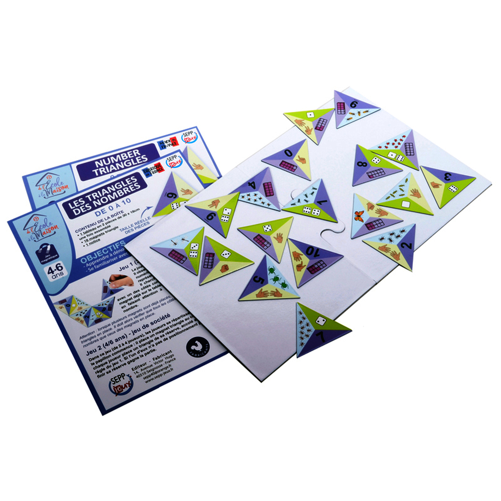 Associer les nombres de 0 ? 10 en pla?ant les triangles aimant?s c?te ? c?te. Un jeu de rep?rage visuel et de reconnaissance des nombres tout en manipulant.