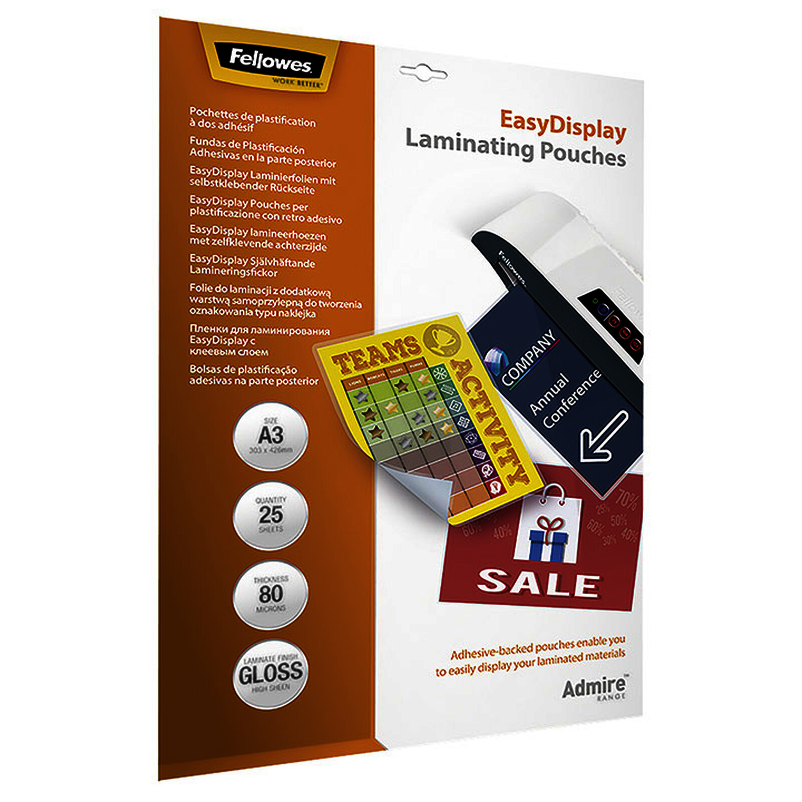 BOITE DE 25 POCHETTES PLASTIF. DOS ADHÉSIF FELLOWES A3 80µ