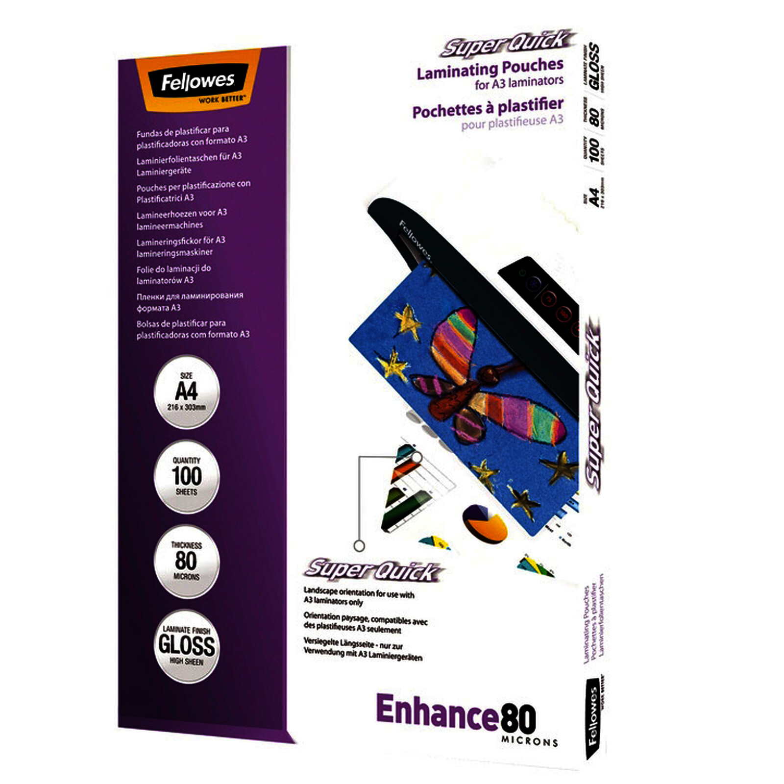 BOITE DE 100 POCHETTES PLASTIF. FELLOWES SUPERQUICK A4 80µ