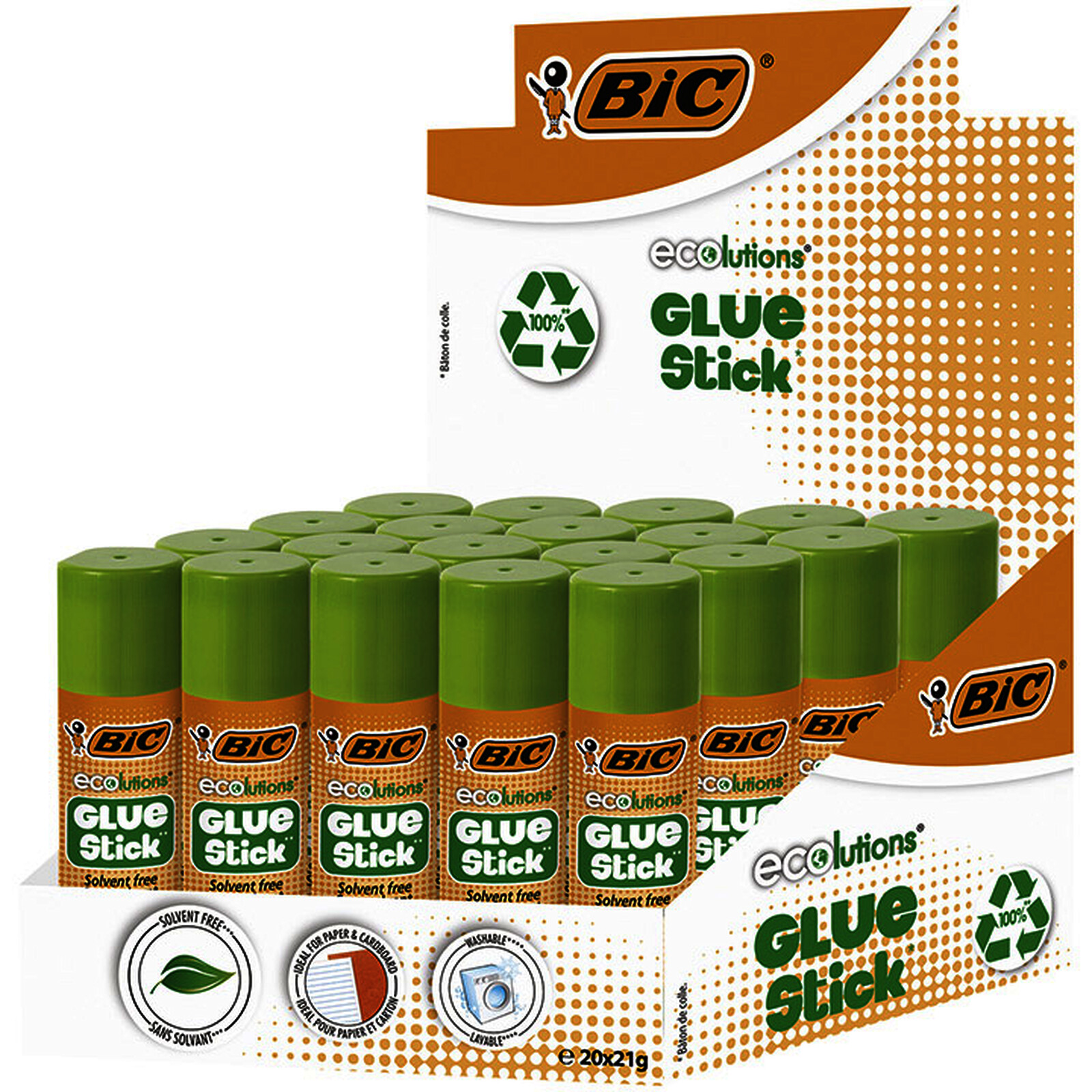 LOT 20 BÂTONS COLLE 21G DONT 3 OFFERTS ECOLUTIONS BIC