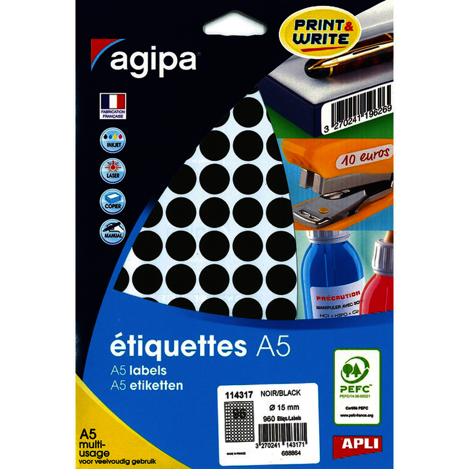 POCH DE 10 PLANCHES - 960 PASTILLES ADH NOIR D15MM APLI