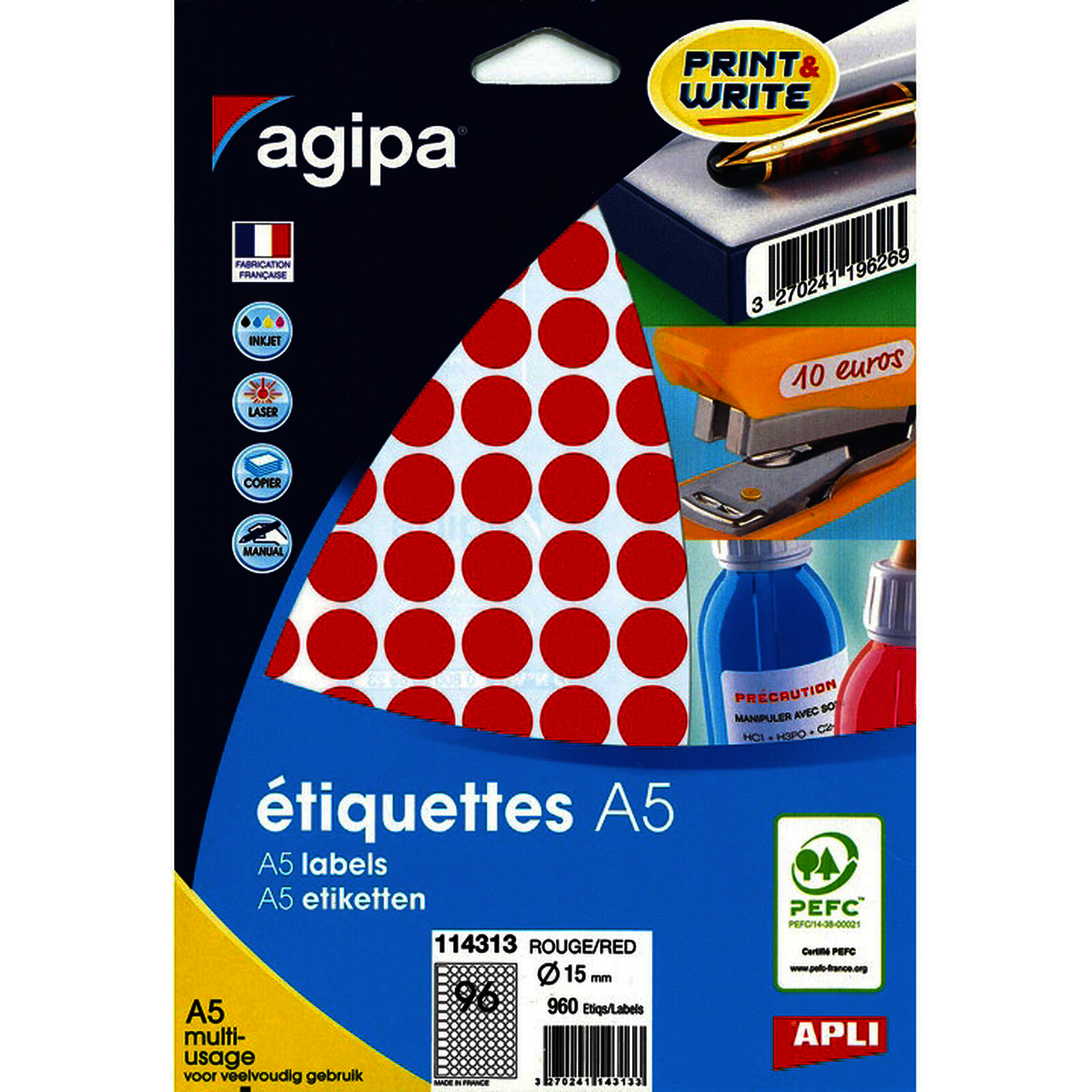 POCH DE 10 PLANCHES - 960 PASTILLES ADH ROUGE D15MM APLI