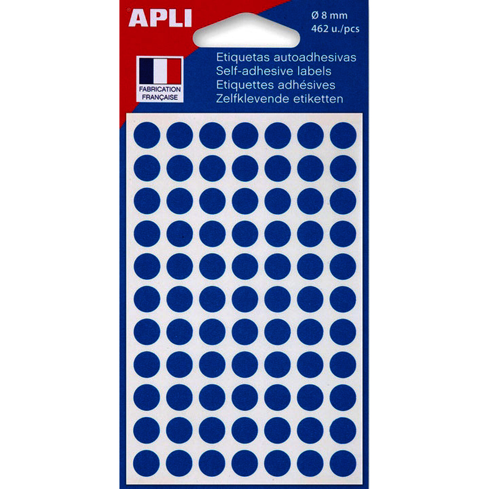 POCHETTE DE 6 PLANCHES PASTILLES ADHÉSIVES BLEU D 8 MM APLI