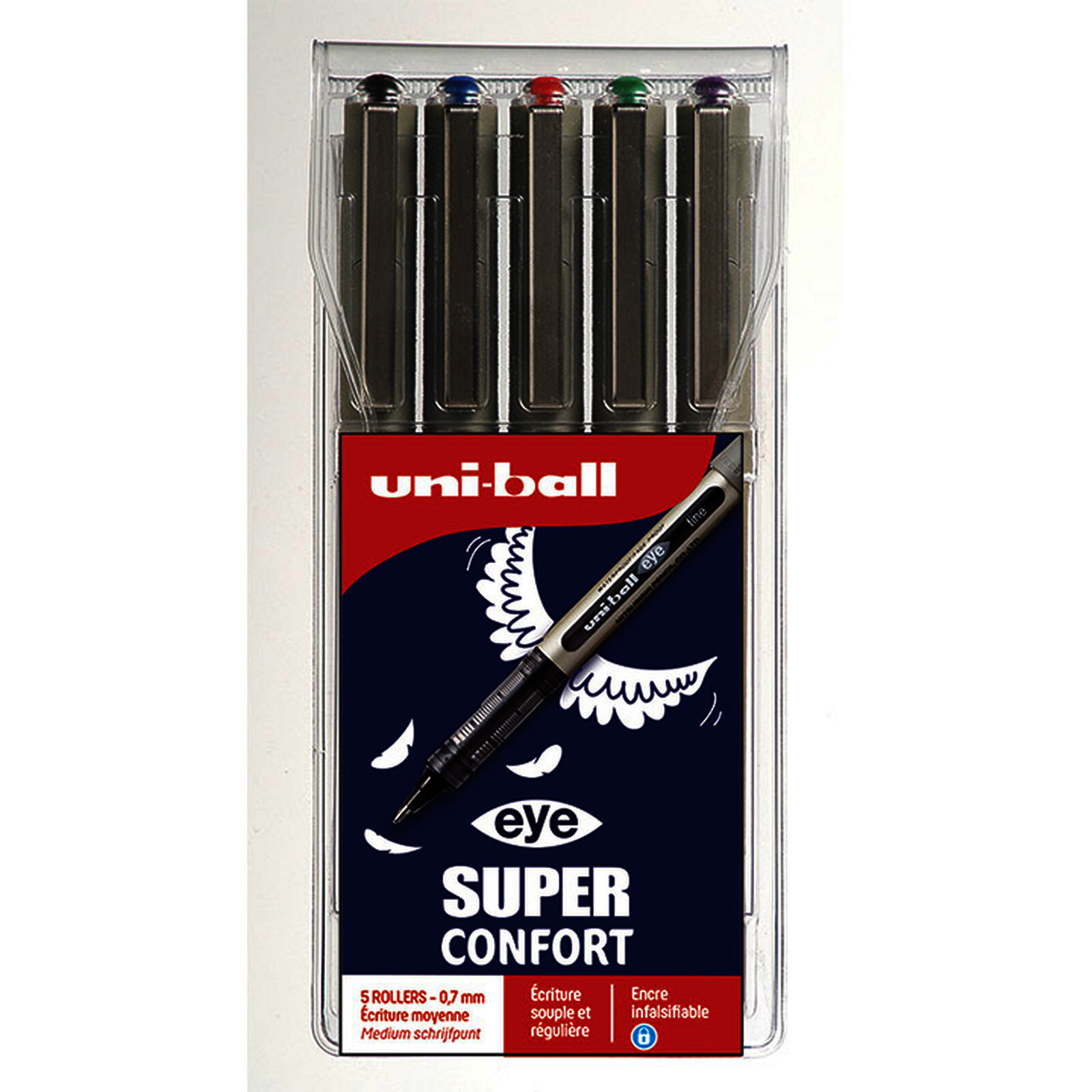 POCHETTE DE 5 ROLLERS UB 157 ASSORTIS POINTE MOYENNE UNIBALL