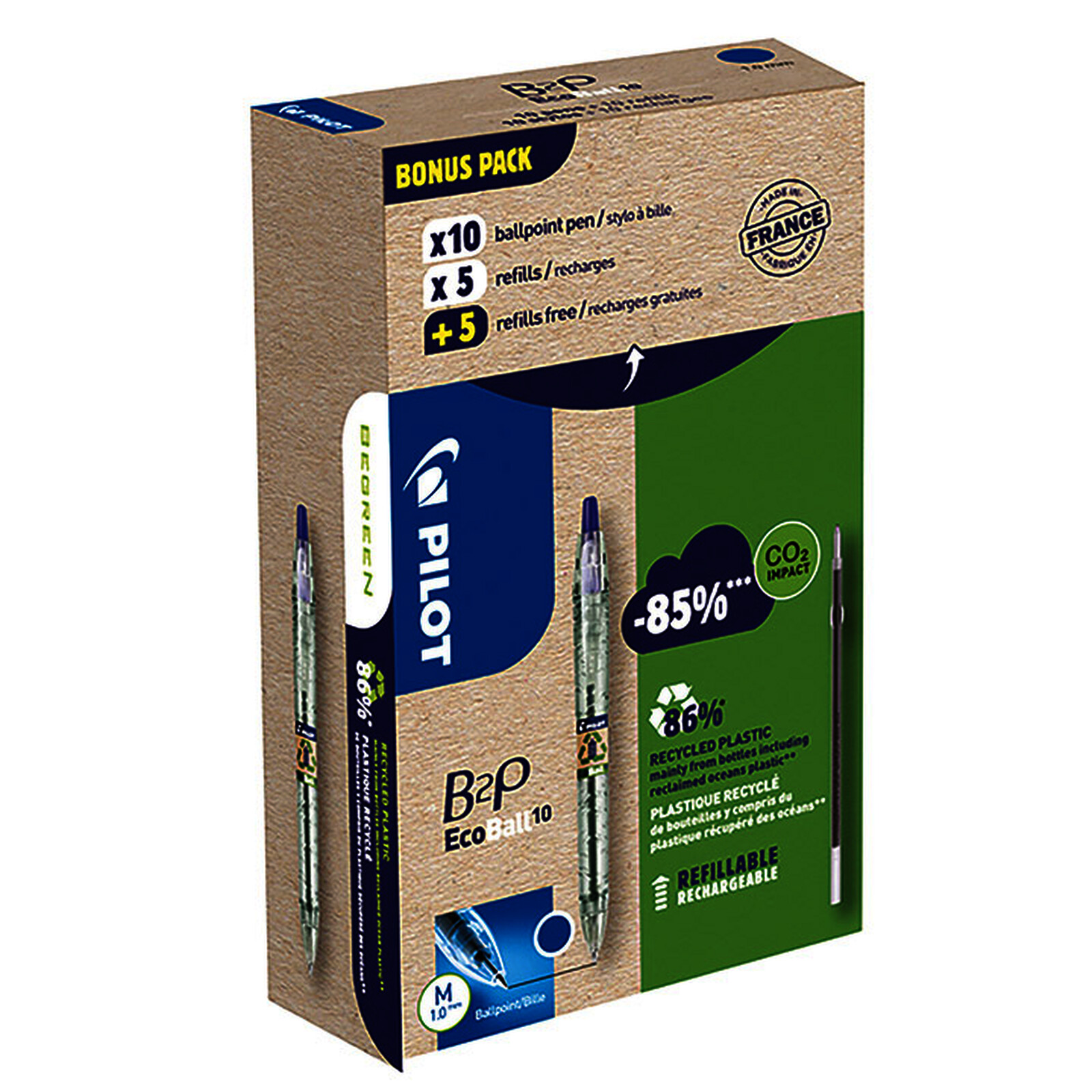 GREENPACK +10 RECHARGES DT 5 OFFERTES B2P ECOBALL BLEU PILOT