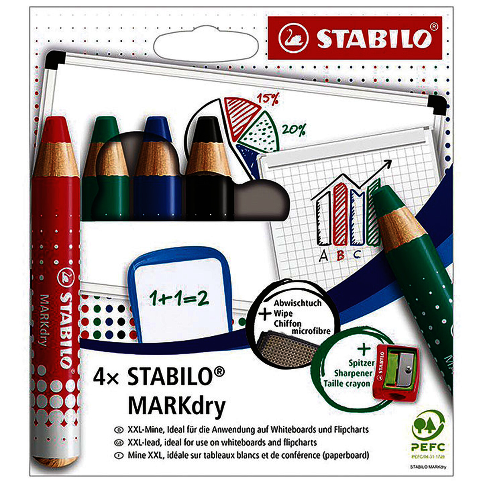 4 MARKDRY + 1 TAILLE-CRAYONS + 1 CHIFFONNETTE STABILO