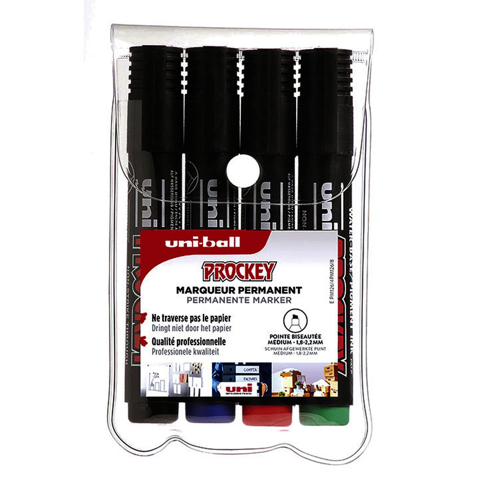 4 MARQUEURS PERMANENTS PM126 ASS BISEAUTÉE 5,70 MM UNIBALL