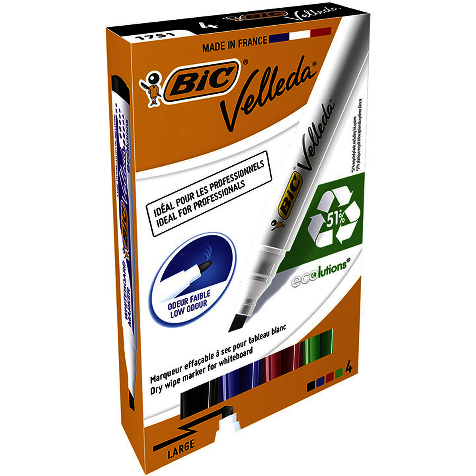 POCHETTE DE 4 VELLEDA 1751 COL ASS PTE BISEAUTÉE BIC