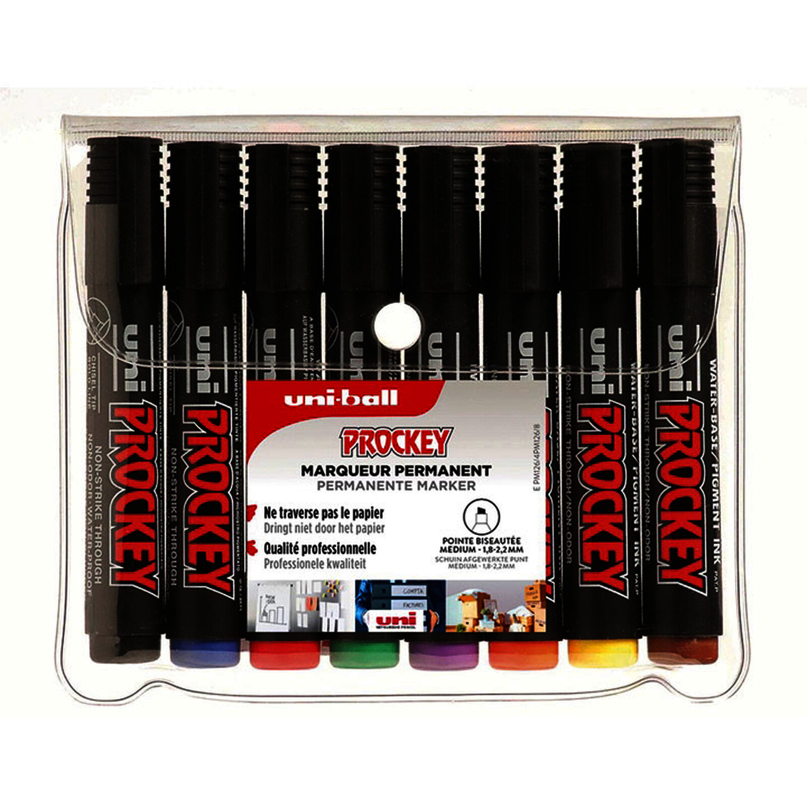 8 MARQUEURS PERMANENTS PM126 ASS BISEAUTÉE 5,70 MM UNIBALL