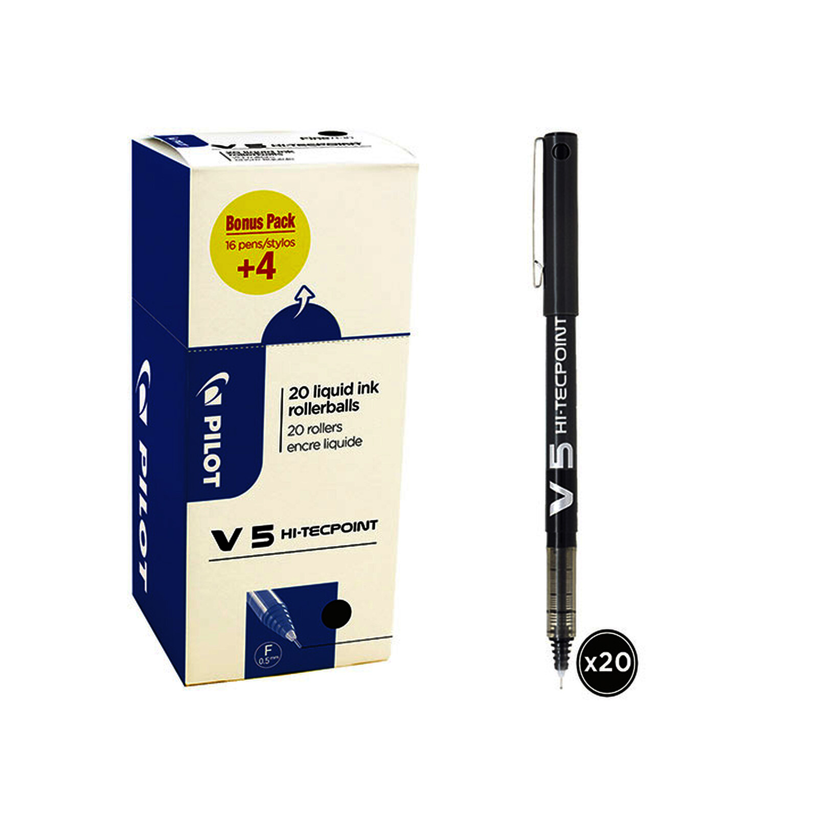 LOT 20 ROLLERS HI-TECHPOINT V5 DT 4 OFF NOIR PTE FINE PILOT