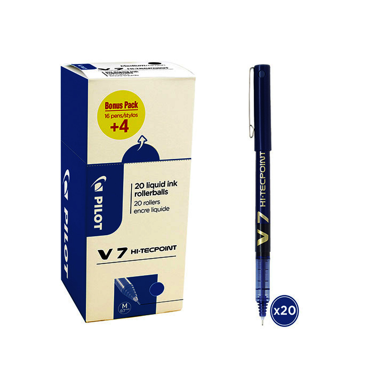 LOT 20 ROLLERS HI-TECHPOINT V7 DT 4 OFF BLEU PTE MOY PILOT