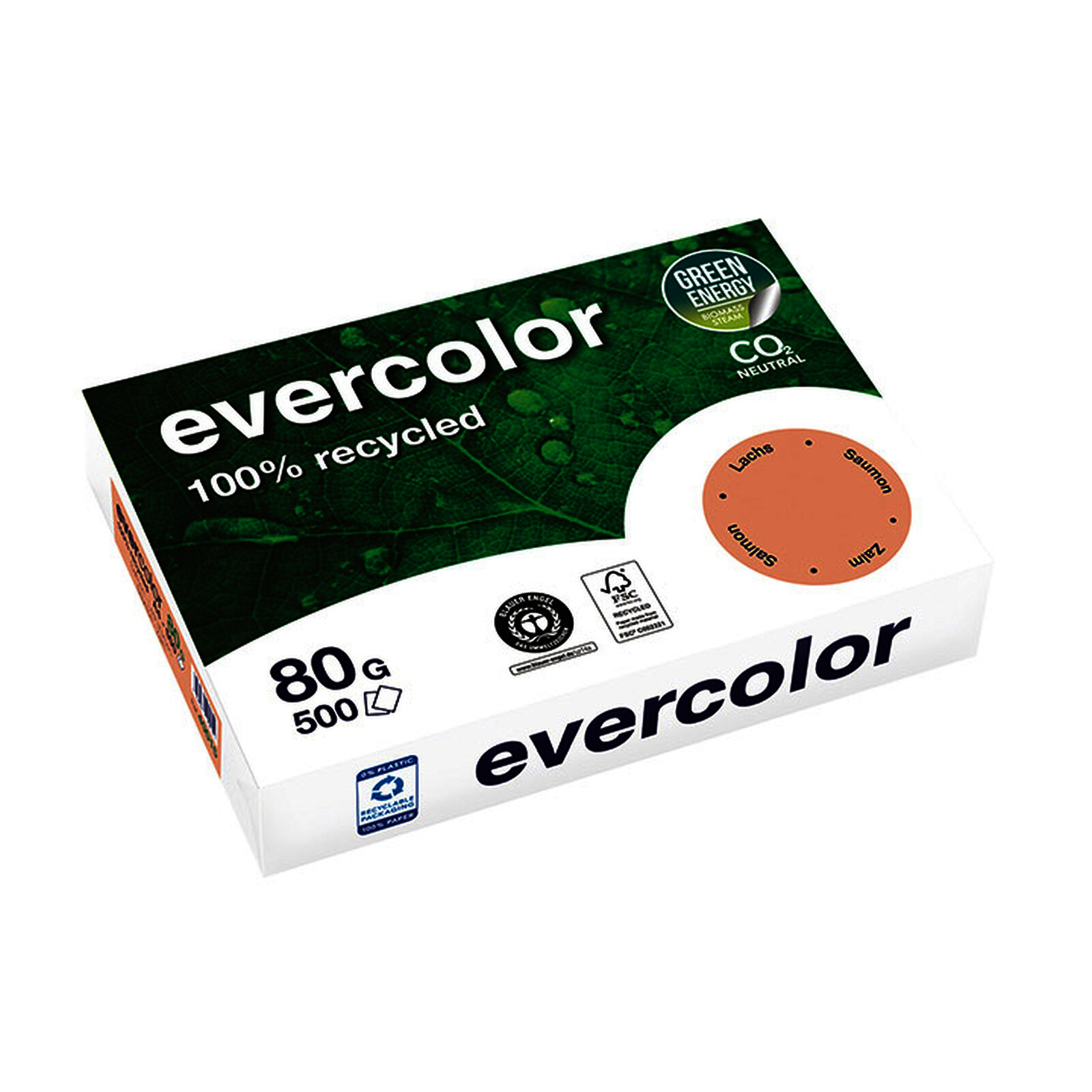 RAMETTE A4 80G SAUMON 100% RECYCLÉ EVERCOLOR
