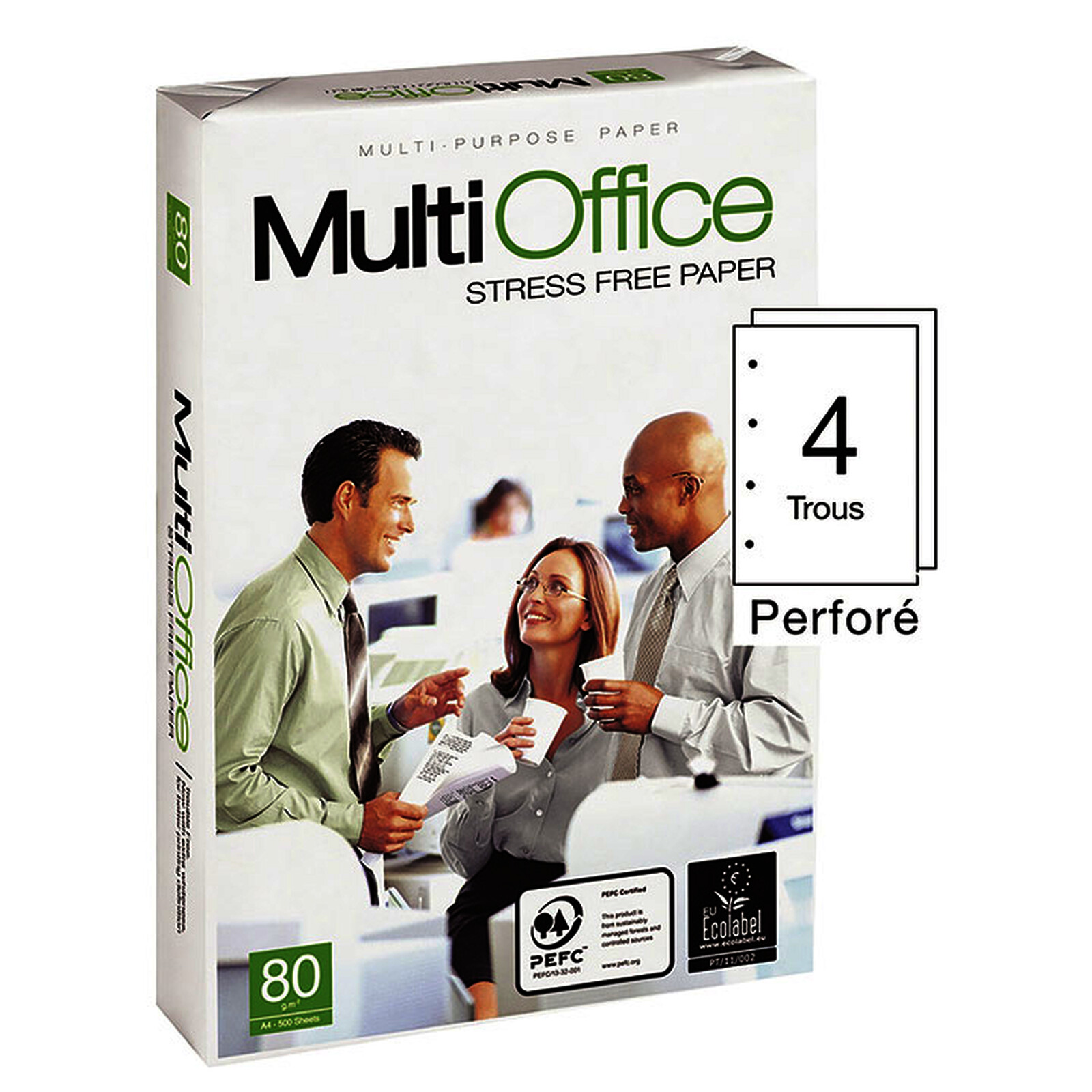CARTON DE 5 RAMETTES A4 80G BLC PERFORÉ 4 TROUS MULTIOFFICE