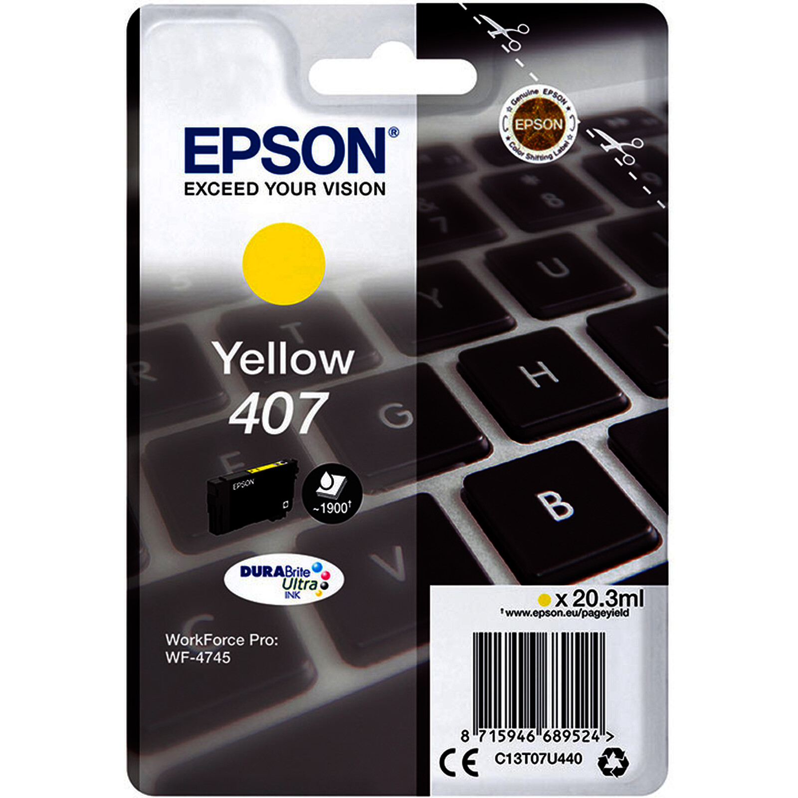 EPSON 407 CARTOUCHE D'ENCRE JAUNE D'ORIGINE (C13T07U440)