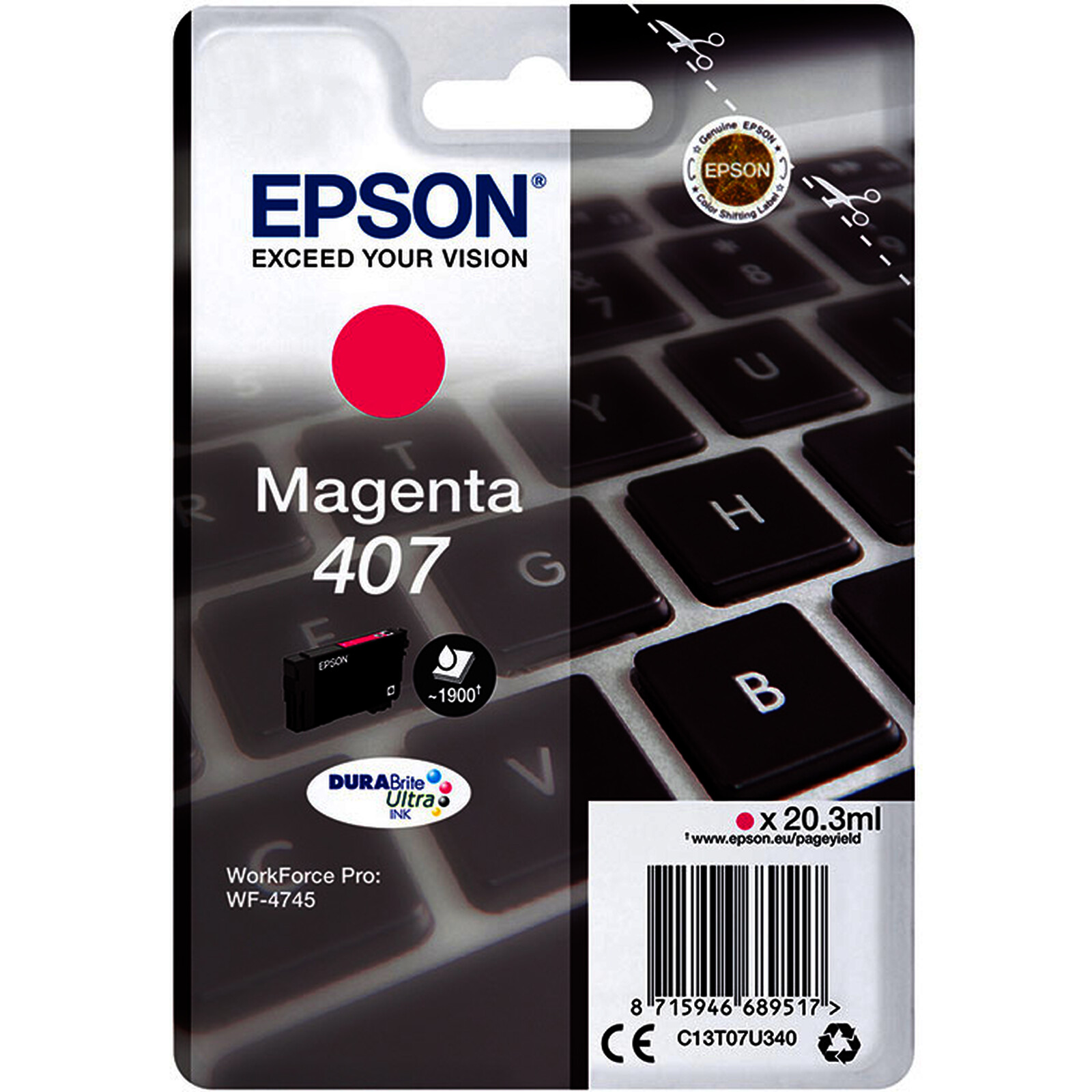 EPSON 407 CARTOUCHE D'ENCRE MAGENTA D'ORIGINE (C13T07U340)