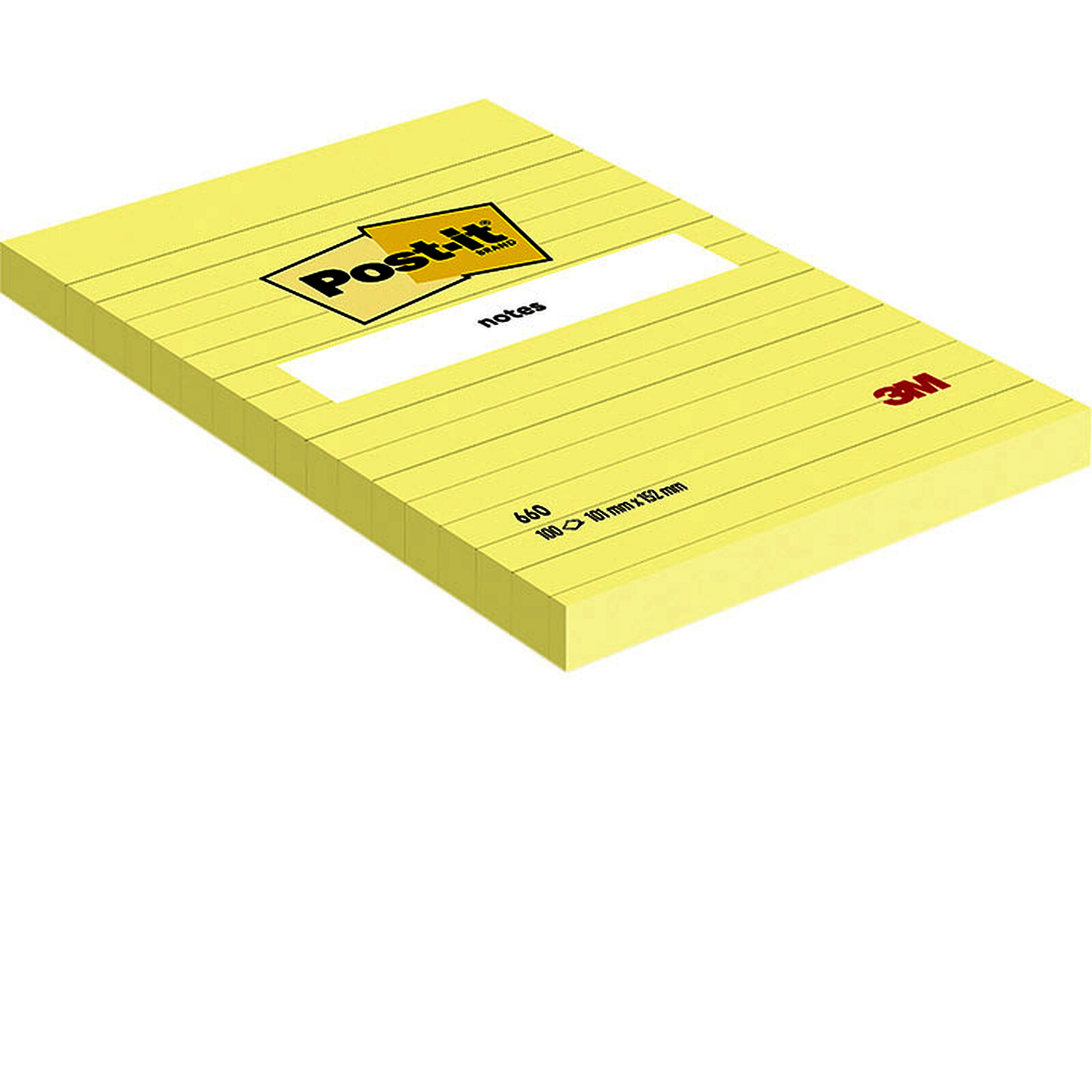 BLOC 102 X 152 MM 100 FEUILLES LIGNÉES REPO JAUNE POST IT