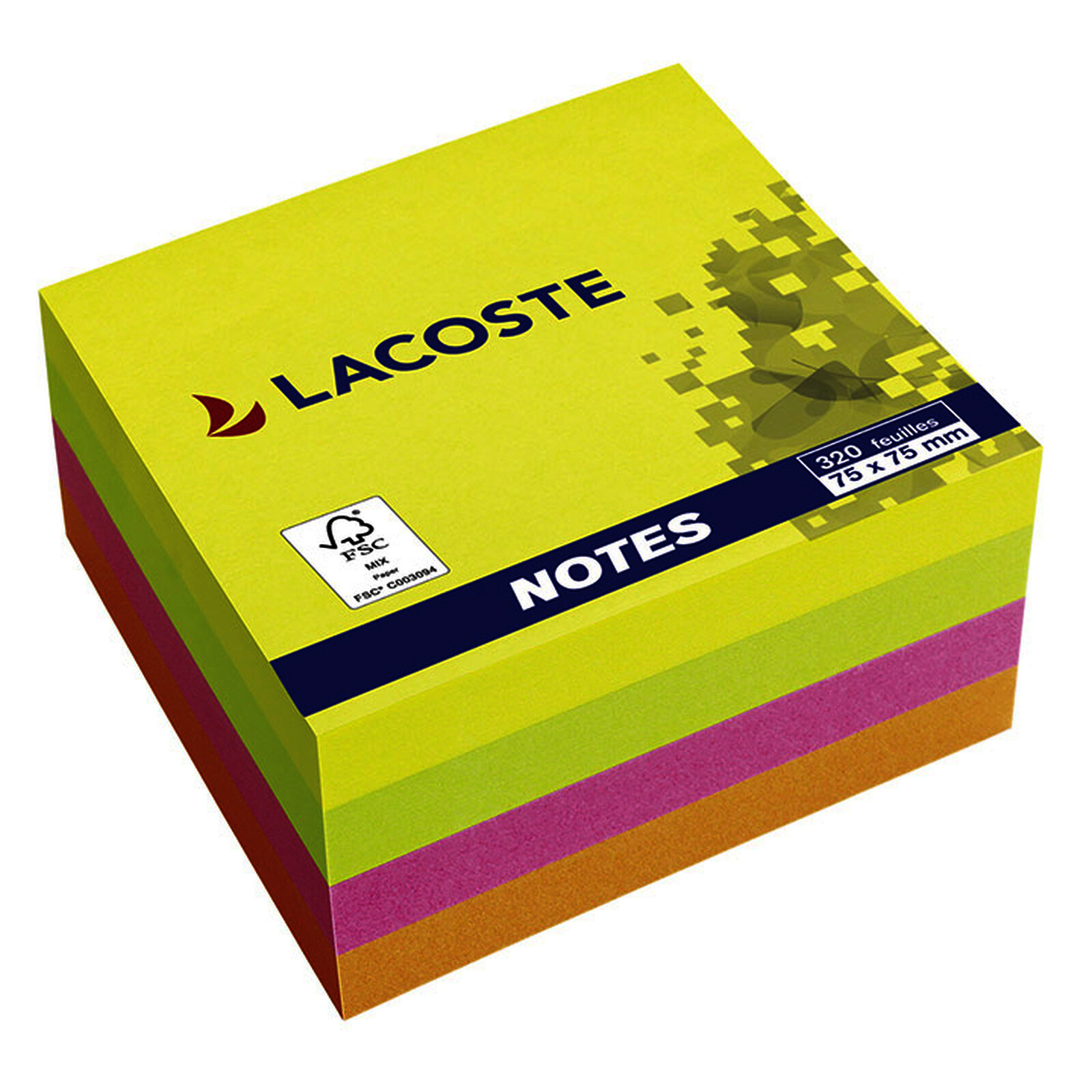 BLOC-CUBE 75 X 75 MM 320F REPO COLORIS NÉON LACOSTE