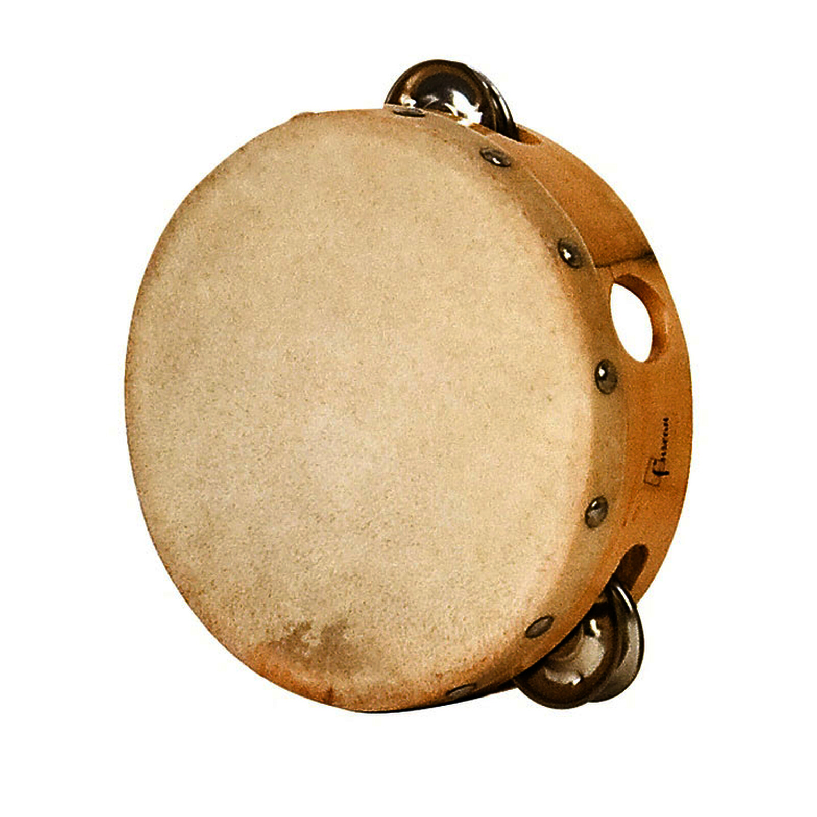 TAMBOURIN EN PEAU NATURELLE AVEC CYMBALETTES