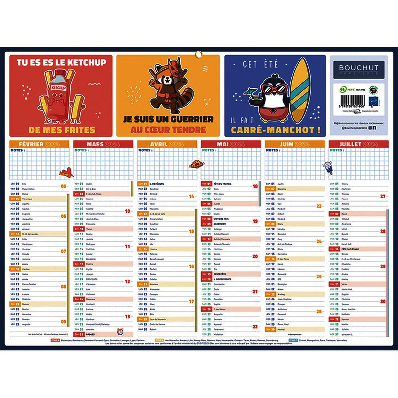 CALENDRIER "RÈGLES VIE" AOÛT - JUILL 32 X 42 CM