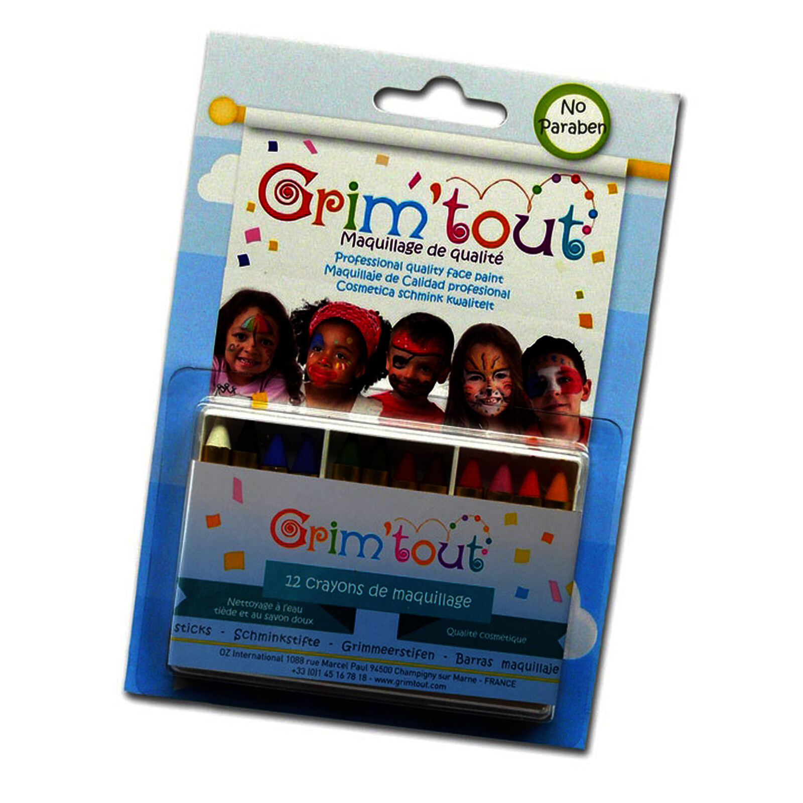 BTE. 12 CRAYONS À MAQUILLAGE GRIM TOUT D8,5X60MM