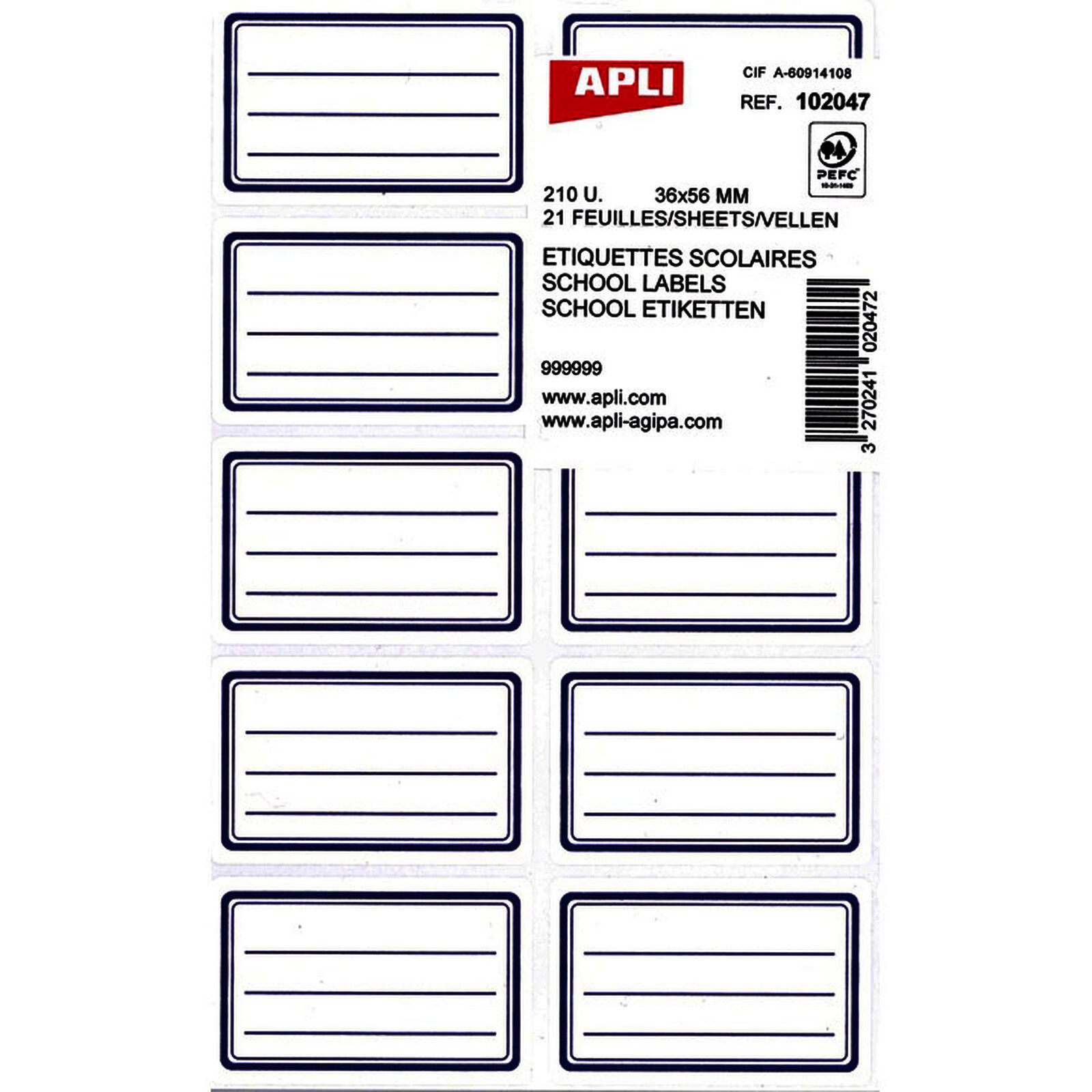 POCH. 210 ÉTIQUETTES "ÉCOLIER" APLI AGIPA 102047 36X56MM-BL