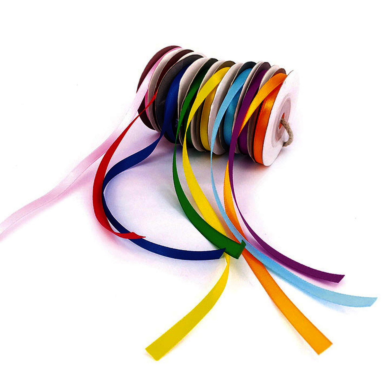 LOT DE 8 RUBANS EN SATIN 1 FACE 6MMX10M COLORIS ASSORTIS