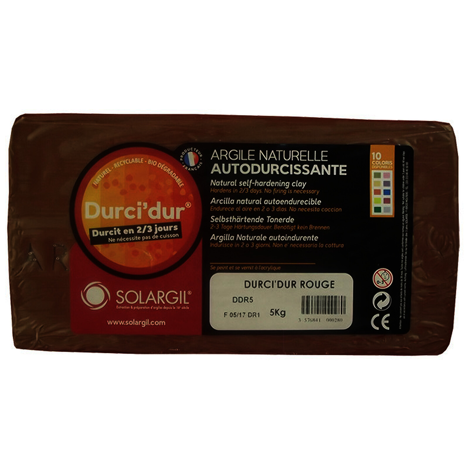 PAIN DE 5KG D'ARGILE DE MODELAGE AUTODURCISSANTE ROUGE