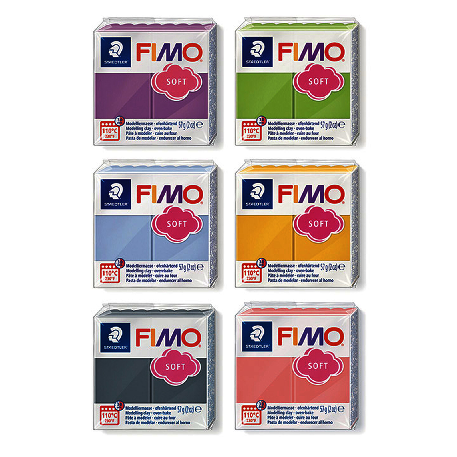 LOT DE 6 PAINS DE 57G DE PÂTE FIMO COLORIS PASTELS ASSORTIS