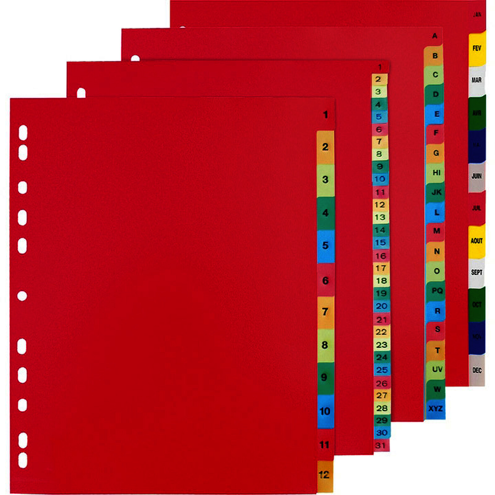 JEU D'INTERCALAIRES A4 1 À 12 TOUCHES NUMÉRIQUES PP 12/100E