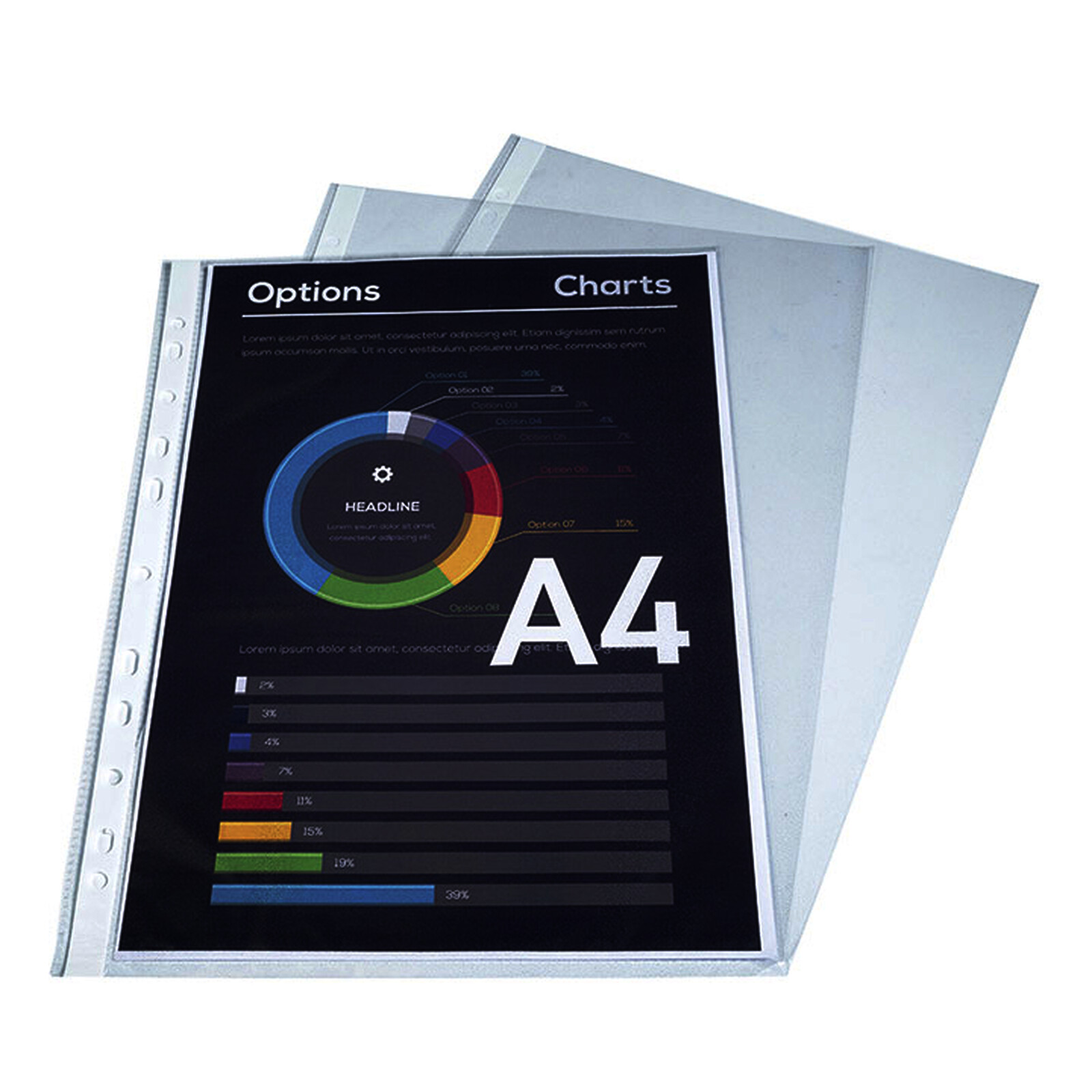 LOT DE 100 POCHETTES PERFORÉES A4 GRAINÉES PP 8/100E BUDGET