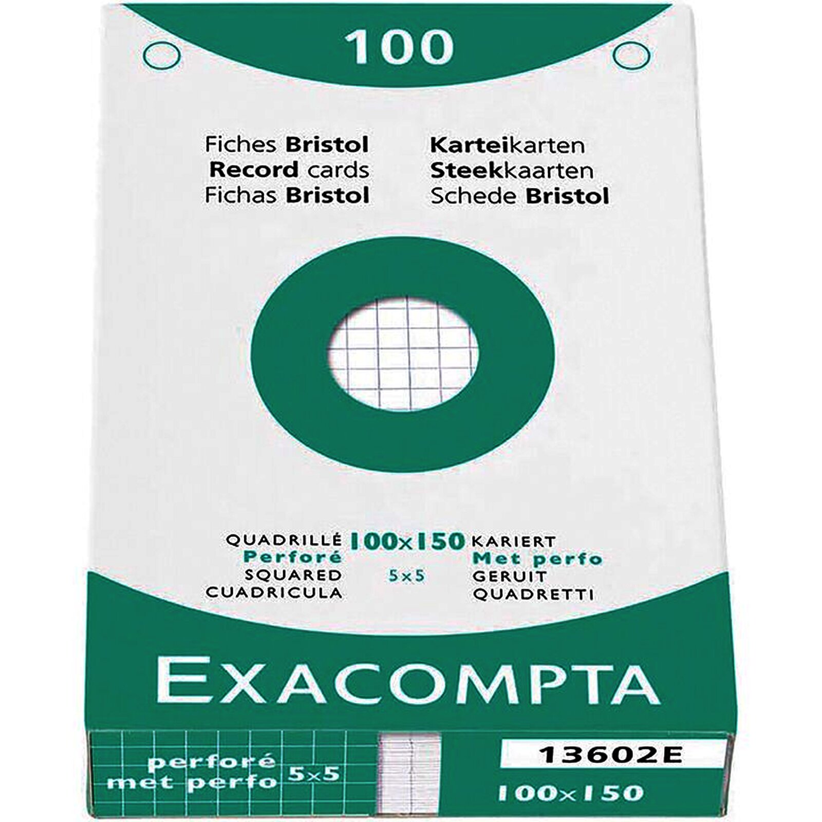 100 FICHES BRISTOL BLANCHES 5X5, 10X15 CM PERFO EXACOMPTA