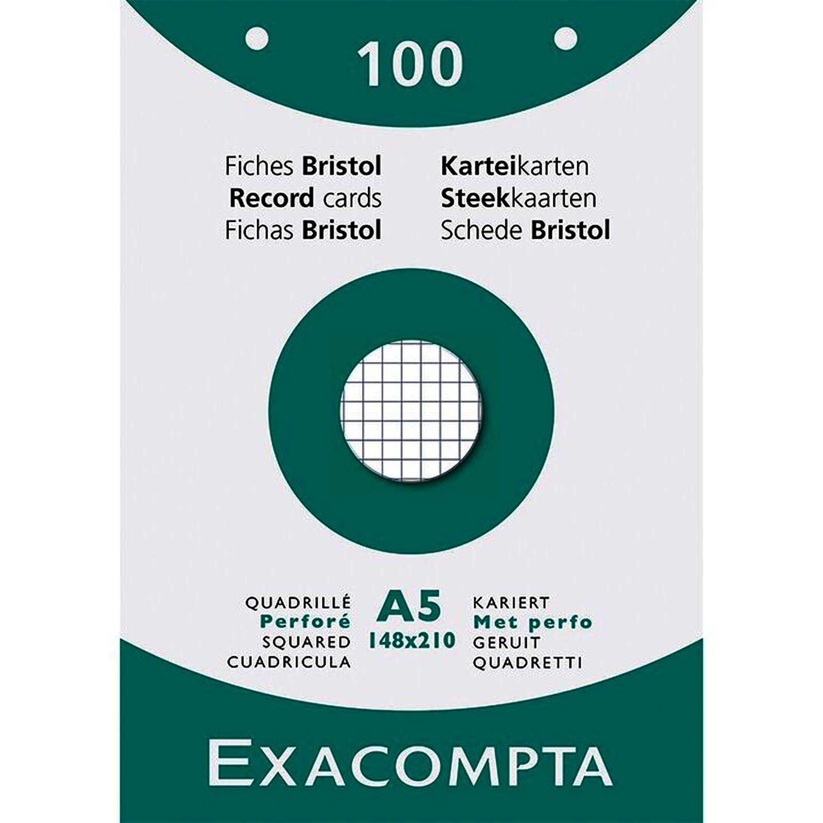 100 FICHES BRISTOL BLANCHES 5X5, 14,8X21 CM PERFOR EXACOMPTA