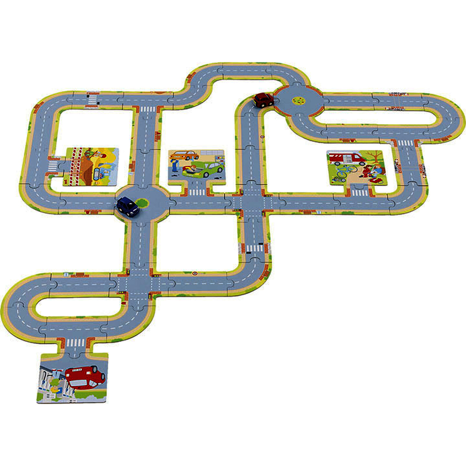 GRAND CIRCUIT EN CARTON + 2 VOITURES À RÉTROFRICTION