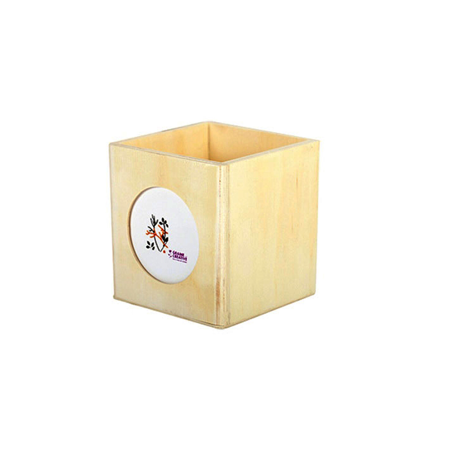 POT CRAYONS AVEC CADRE PHOTO EN BOIS À DÉCORER 10X10X10CM