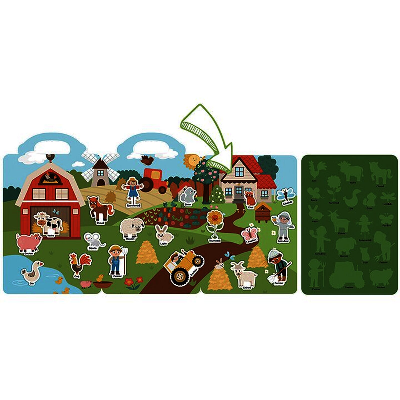LIVRE DÉCOR LA FERME + 19 GOMMETTES STATIQUES RÉUTILISABLES