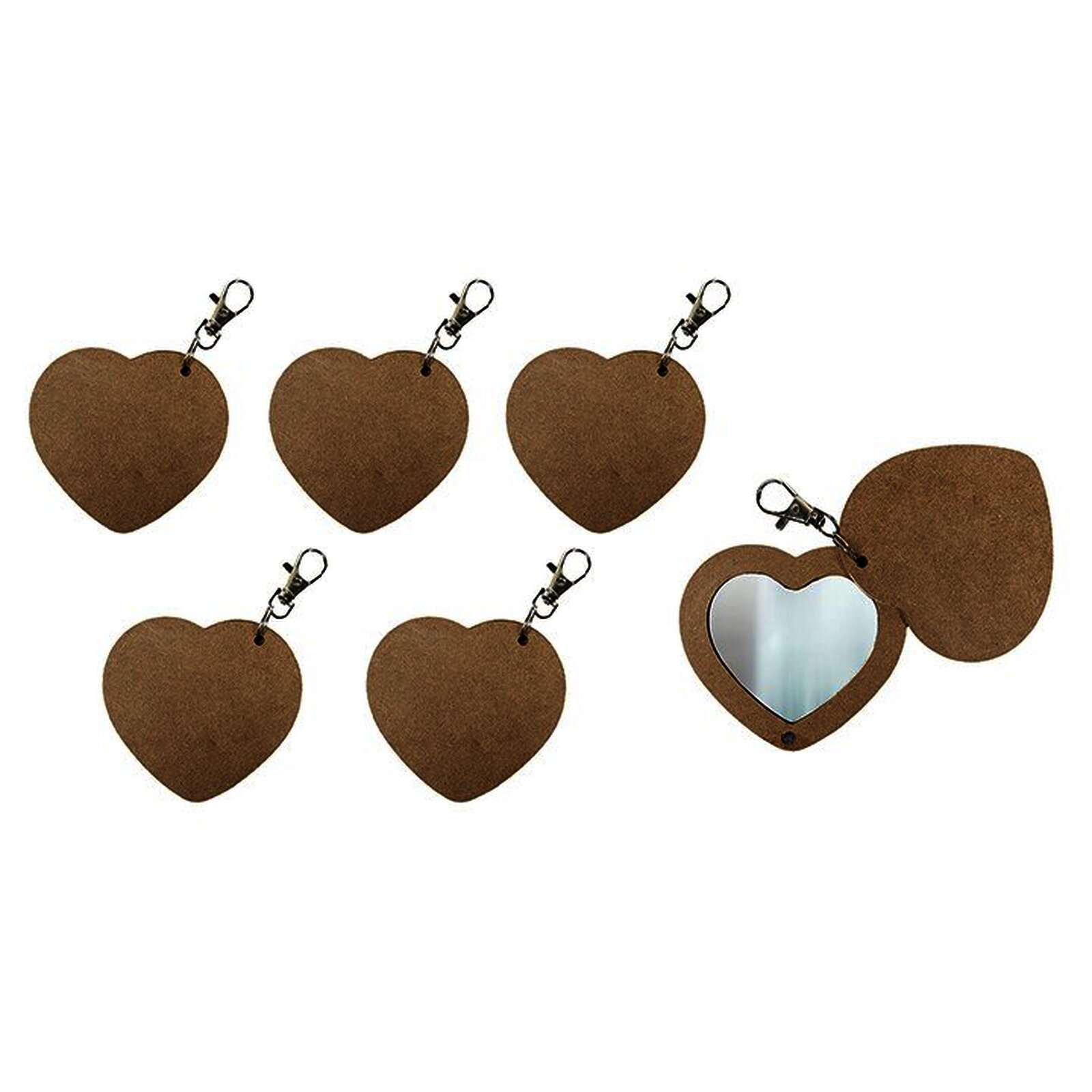 LOT DE 6 PORTE-CLÉS-MIROIRS EN BOIS EN FORME DE CŒUR