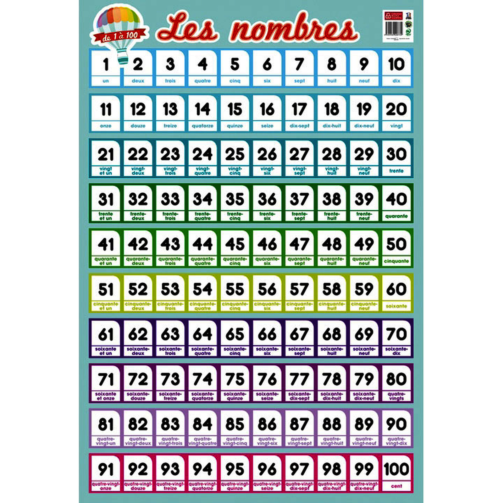 POSTER ÉDUCATIF "LES NOMBRES DE 1 À 100" 52 X76 CM
