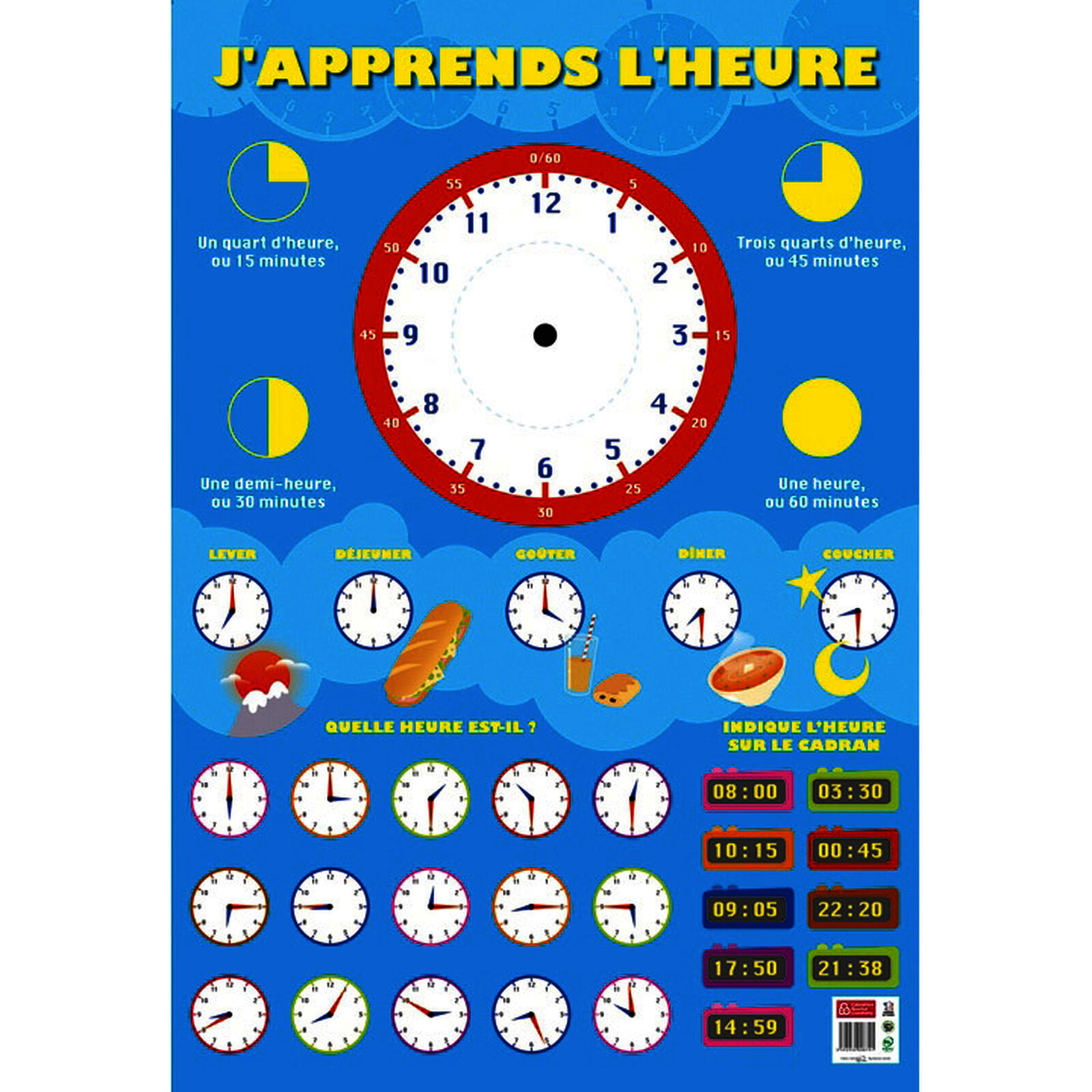 POSTER ÉDUCATIF "J'APPRENDS L'HEURE" 52 X76 CM