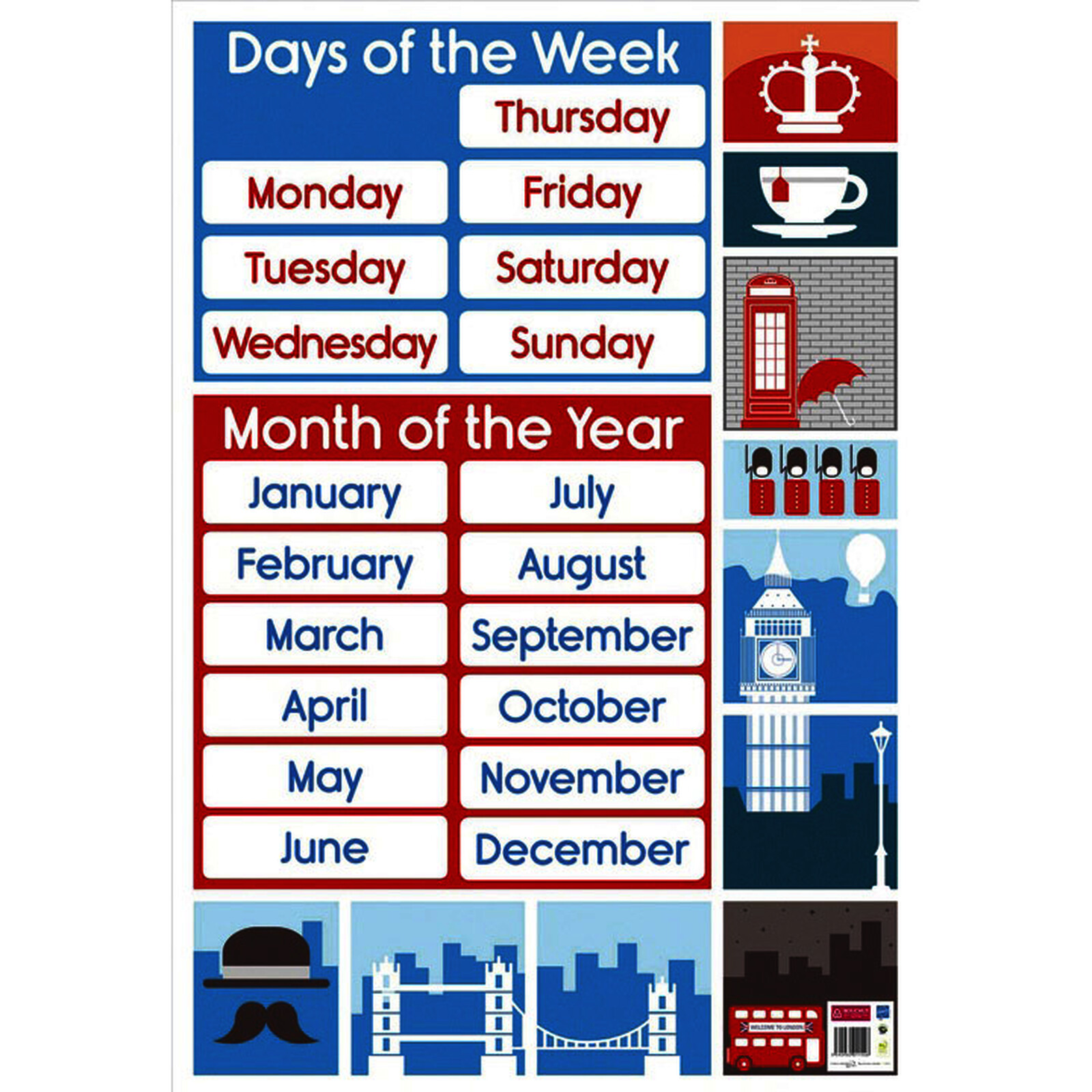 POSTER ÉDUCATIF "JOURS ET MOIS EN ANGLAIS" 52 X76 CM