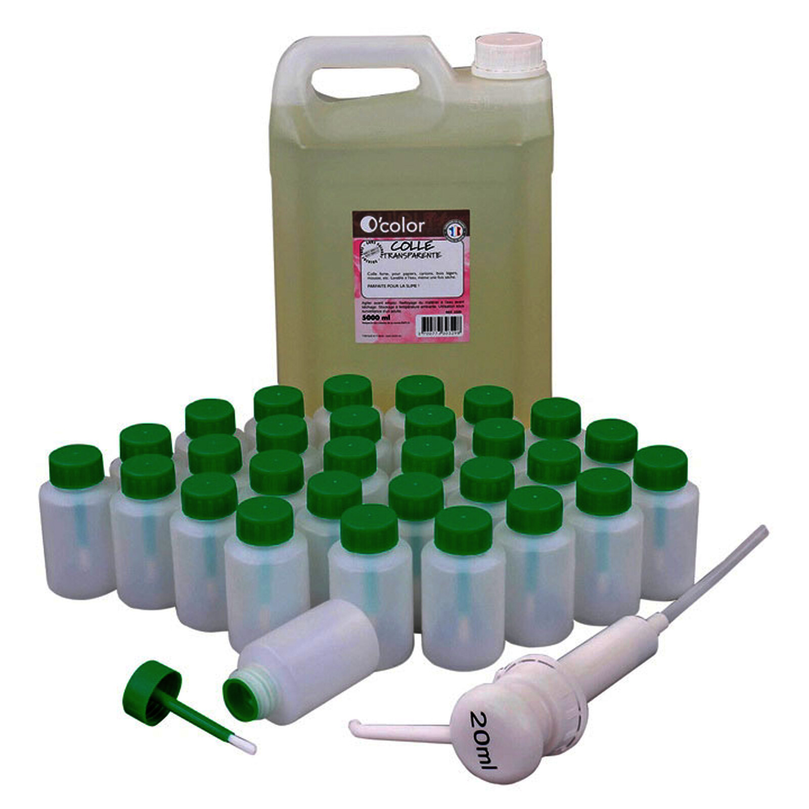 BIDON 5L COLLE FORTE + 30 FLACS PINC VIDES + 1 PPE 20 ML