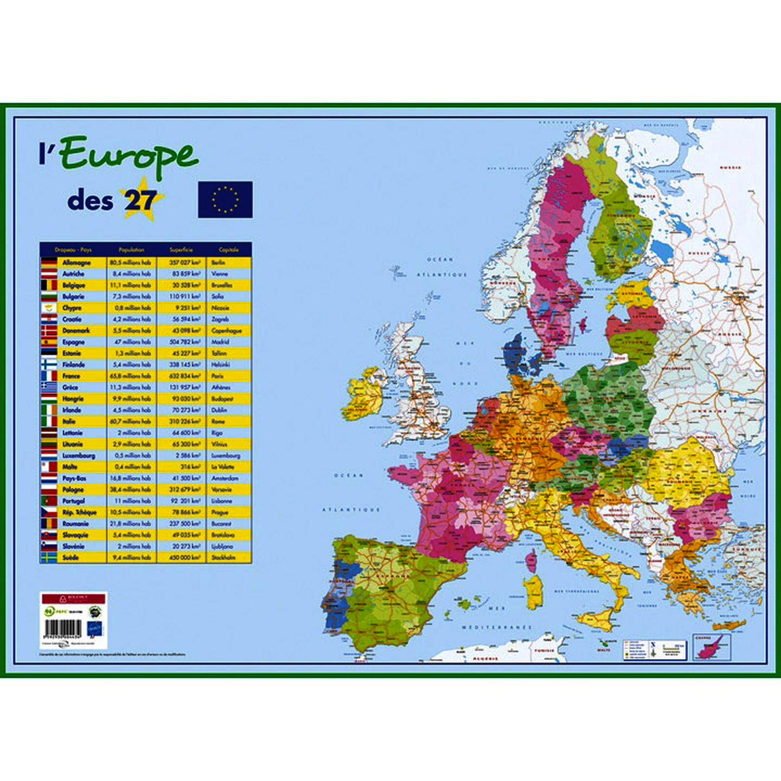 SOUS-MAIN "CARTE EUROPE POLITIQUE" 40,5 X 55 CM