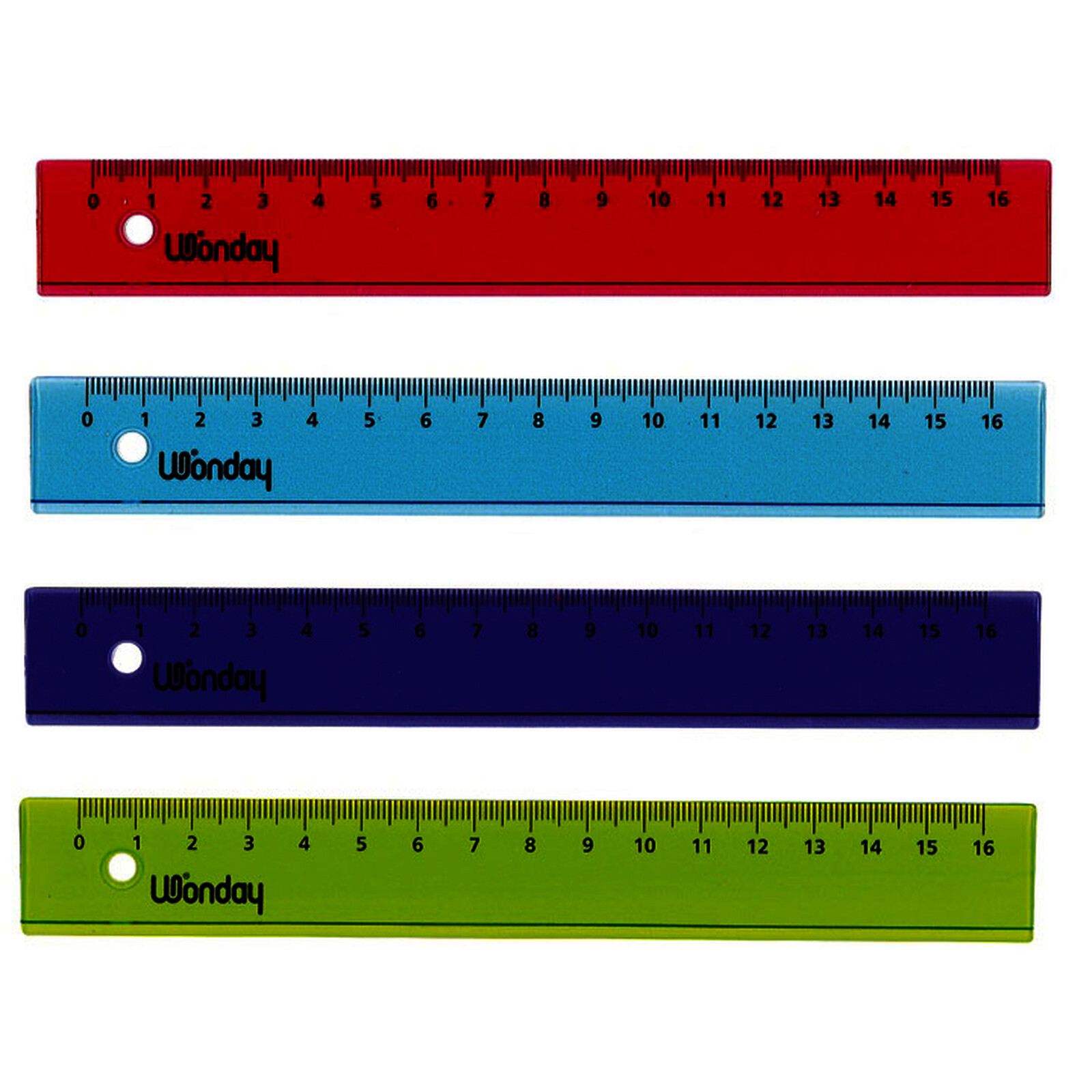 LOT DE 36 RÈGLES PLATES EN PLASTQIUE 16CM COLORIS ASSORTIS