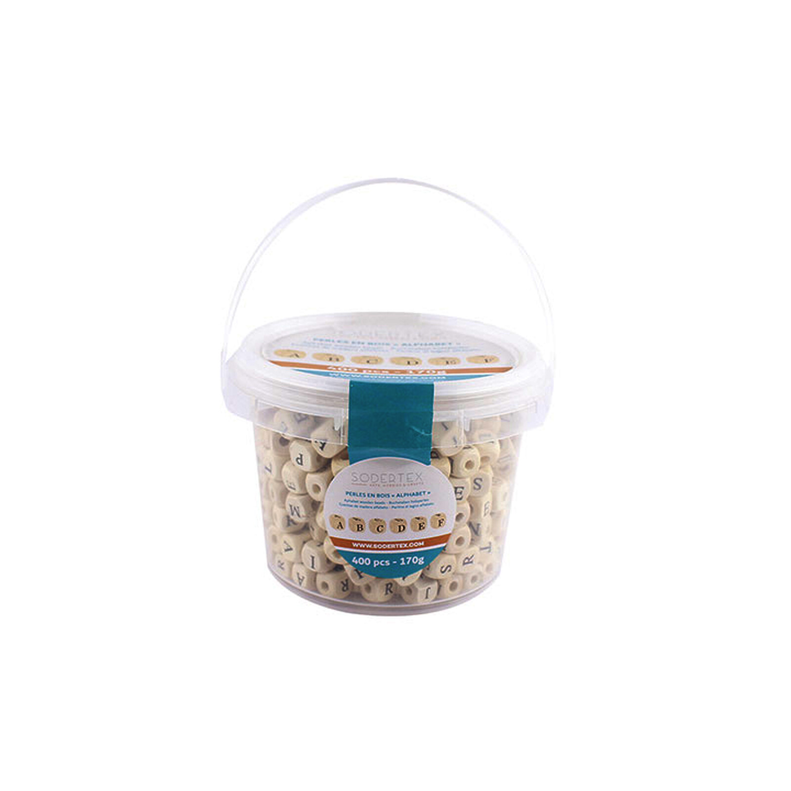 SEAU DE 400 PERLES CUBIQUES EN BOIS "ALPHABET" 1X1CM