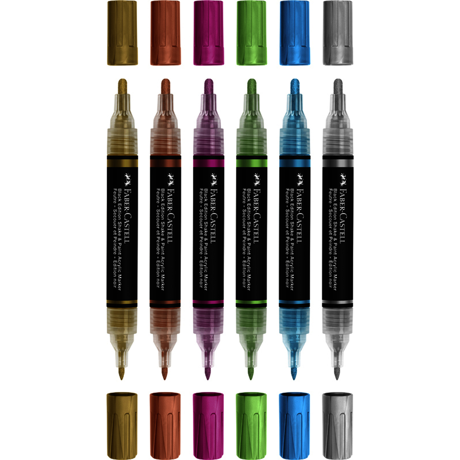 Les marqueurs acryliques Faber-Castell Black Edition sont des outils polyvalents avec une double pointe (1 mm et 3 mm) pour des d?tails fins et des aplats. Ils offrent une opacit? et une intensit? exceptionnelles sur divers supports comme le papier, le m?tal, le plastique et plus encore.