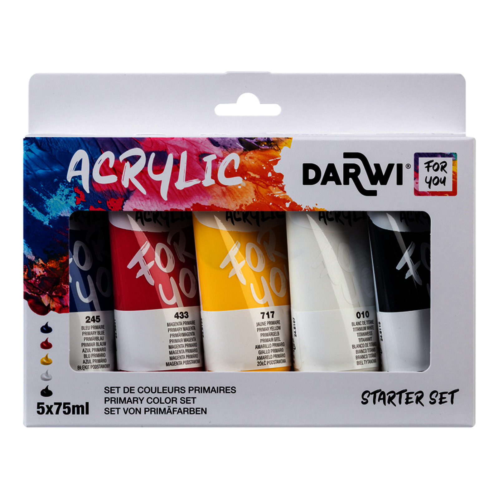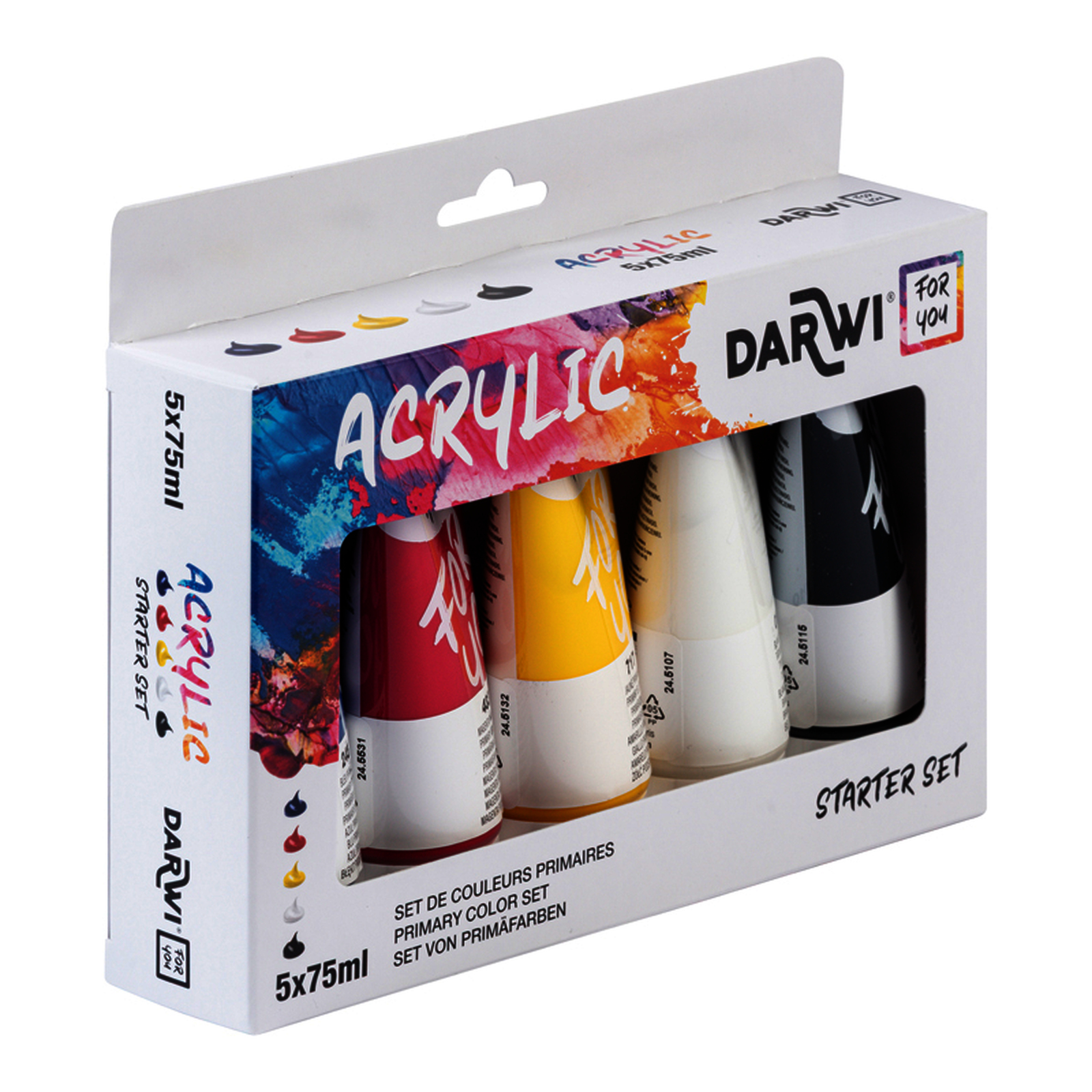 DARWI 1 LOT 5 TUBES PEINTURES ACRYLIQUES 75 ML COLORIS ASSORTIS