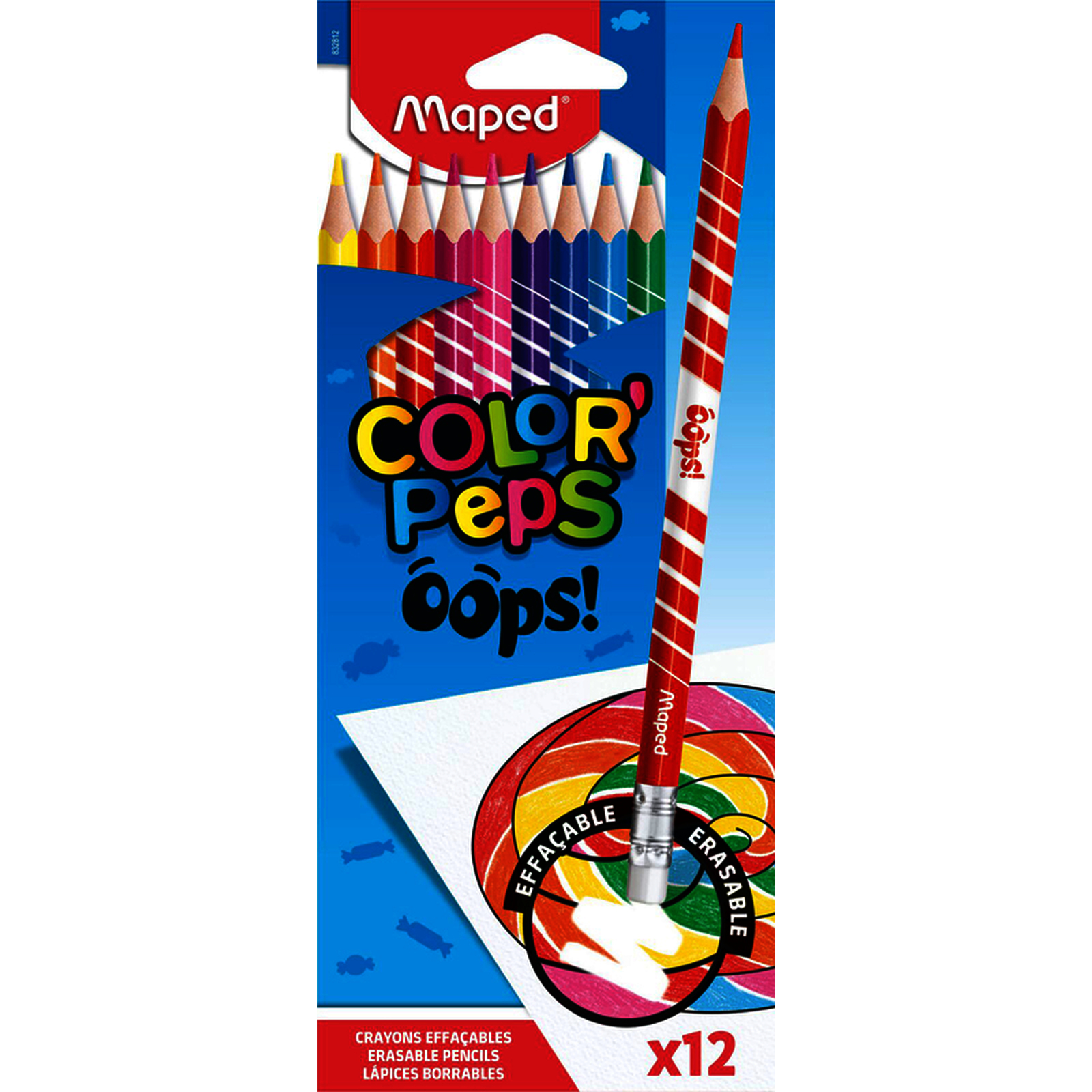 OOPS COLORPEPS 12 CRAYONS COULEURS EFFACABLES COLORIS ASSORTIS