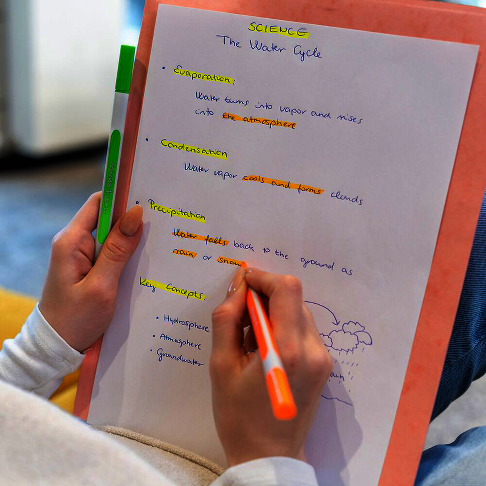 Surligneur ergonomique (corps triangulaire) ? double trait 1 et 4 mm, id?al pour l??tude. Encre universelle brillante, corps fin et confortable. ?coresponsable, 80 % bio-plastique, label Ange Bleu.