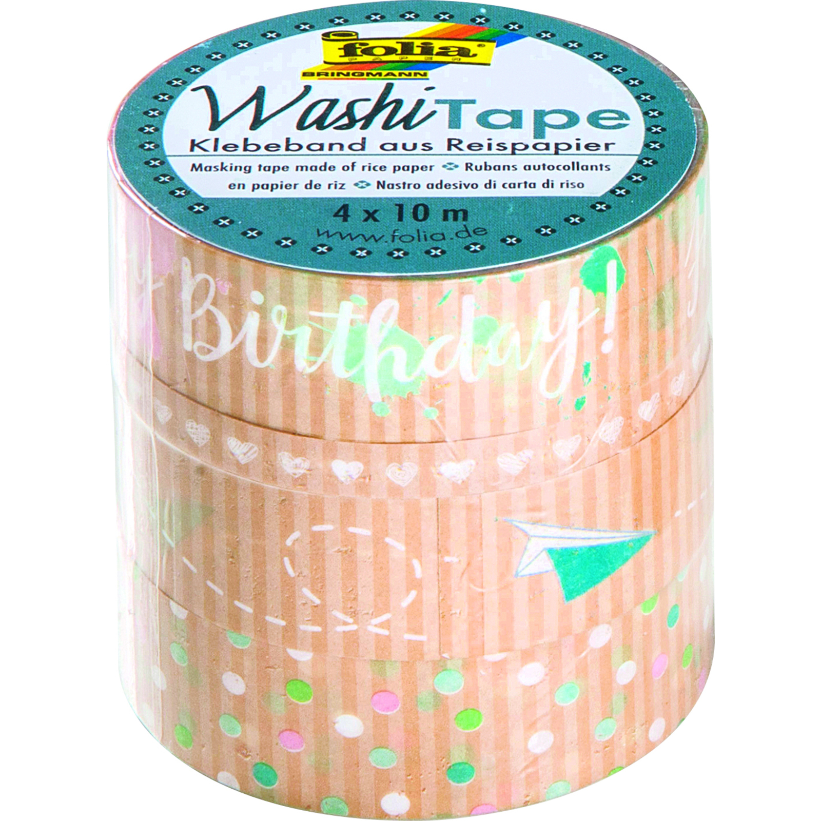 Assortiment de 4 rubans adhésifs : 3 rouleaux de 15 mm x 10 m et 1 rouleau de 5 mm x 10 m. Motifs kraft 1