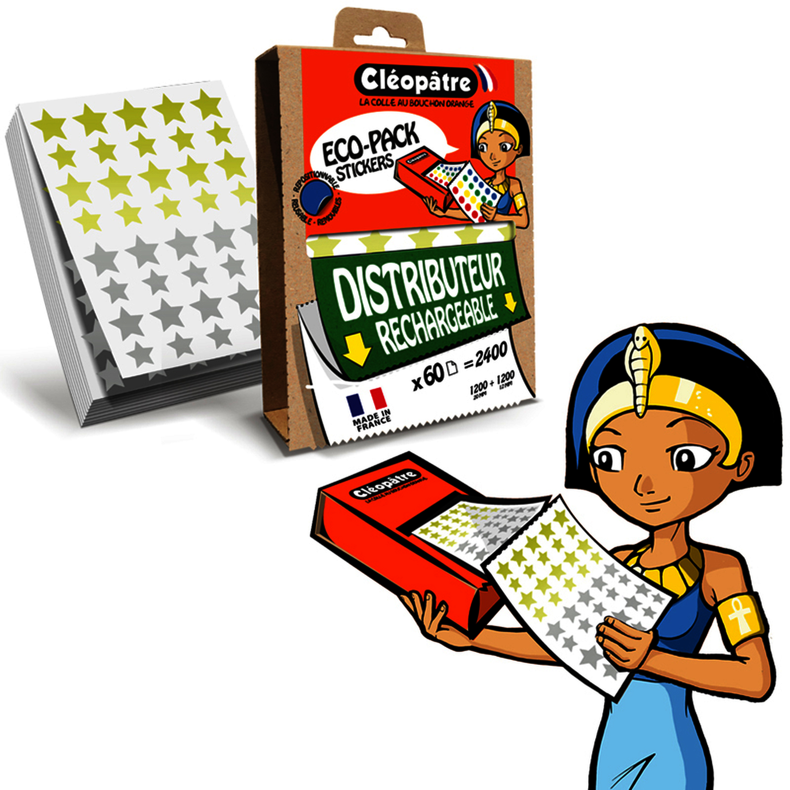 1 BOITE ECOPACK 2400 GOMMETTES ETOILES OR ET ARGENT TAILLES 12 ET 20 MM