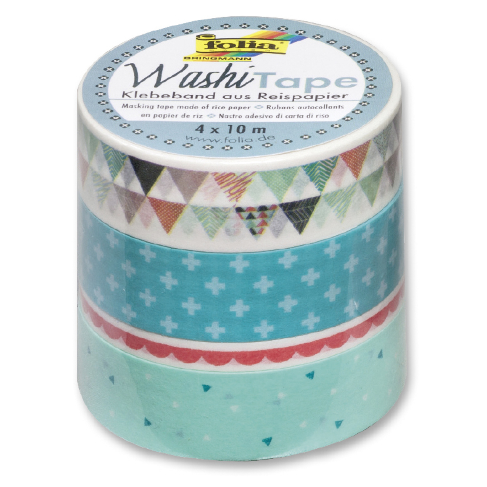 Assortiment de 4 rubans adhésifs : 3 rouleaux de 15 mm x 10 m et 1 rouleau de 5 mm x 10 m. Motif pastel